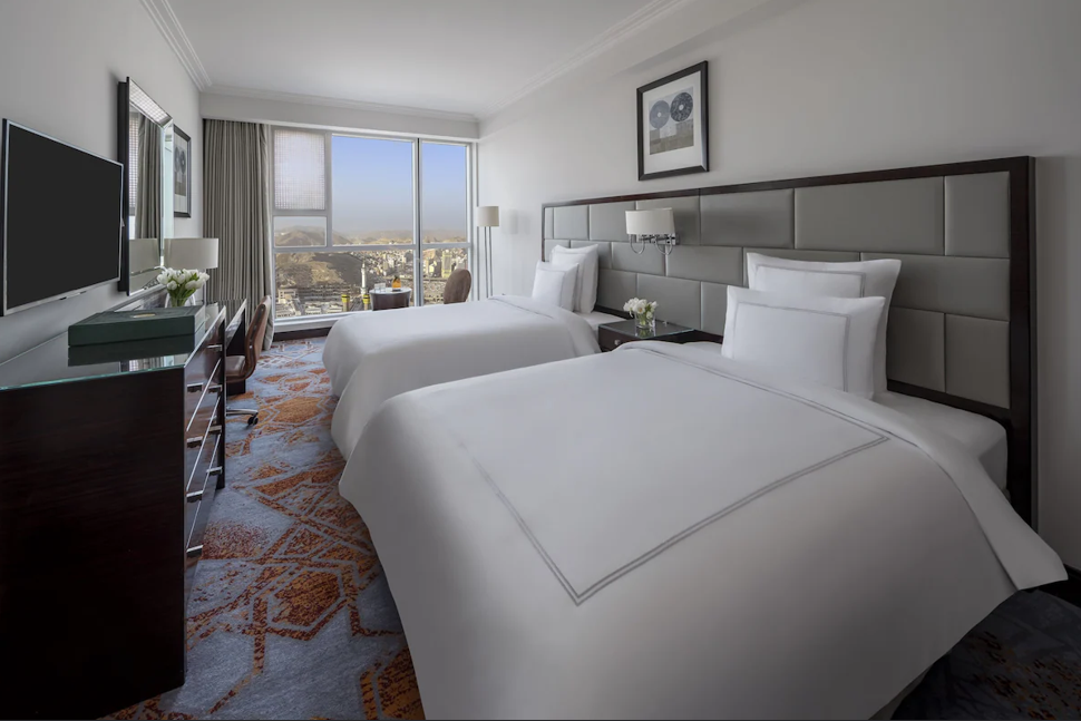 Le Swissôtel Makkah est un hôtel 5 étoiles situé dans le complexe Abraj Al Bait, à proximité immédiate du Masjid al-Haram. Il propose des chambres élégantes, modernes et confortables, dont certaines offrent une vue directe sur la Kaaba. Idéal pour les pèlerins, l’établissement combine luxe, accessibilité et services haut de gamme.